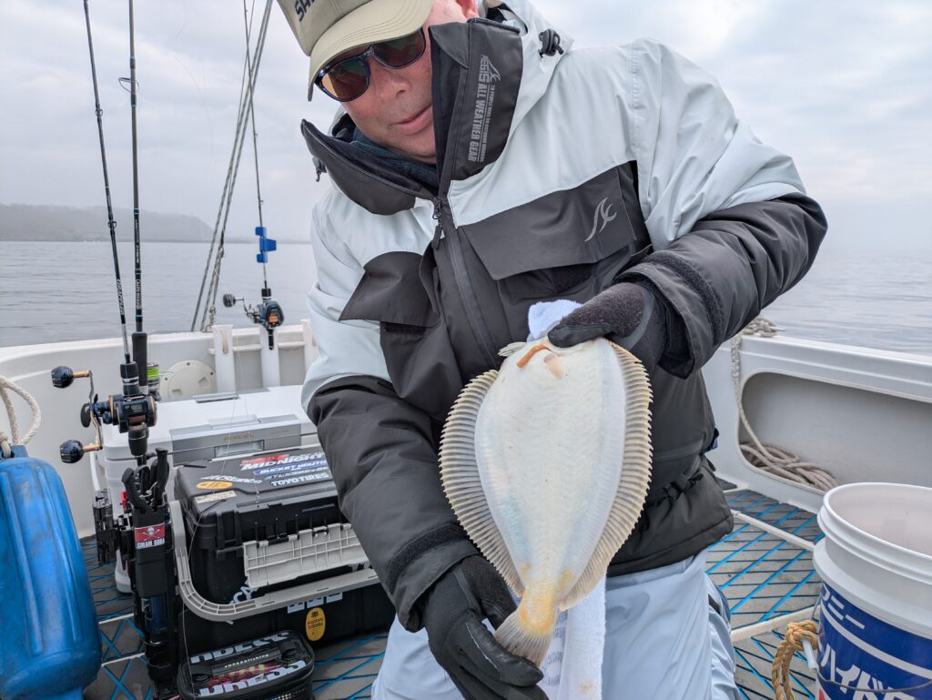I landed a mix of flathead flounder, black rockfish, and Japanese flounder, including several over 40 cm.
